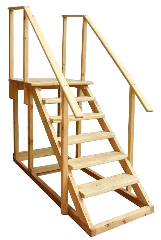 Прочная и удобная лестница из кедра позволит комфортно подниматься и погружаться в воду (5 ступеней и площадка).