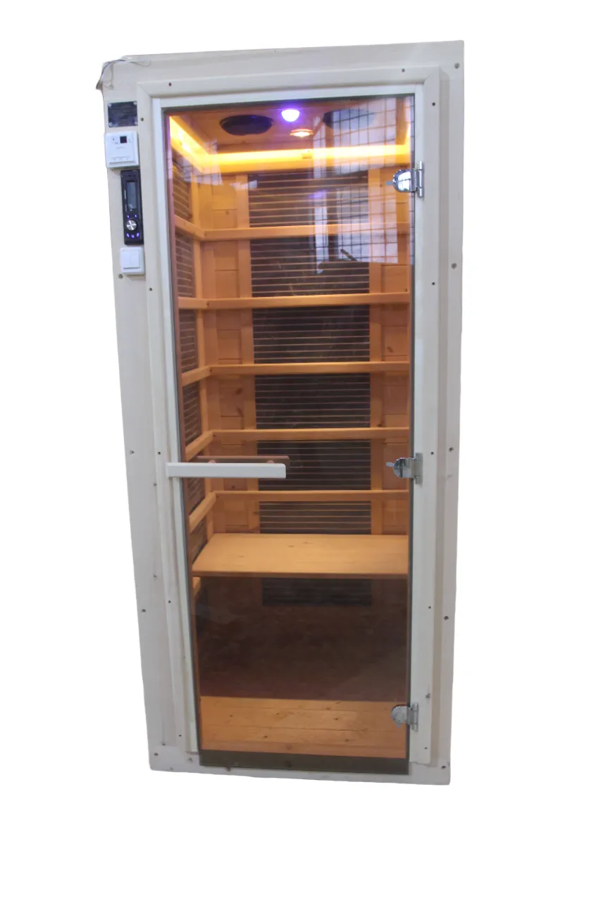Это специально оборудованная кабина из липы для прогрева тела человека сухим теплом. Воздух в таких парных не нагревается. Инфракрасные лучи воздействуют на тело, равномерно прогревая мышцы, суставы и органы. Карбоновые излучатели, встроенные в стены кабины, обладают мягким прогревом, что полностью исключает возможность ожога. Работает кабина за счет электричества. Двухместная инфракрасная сауна с карбоновыми излучателями подойдет как для домашнего использования, так и для коммерции.