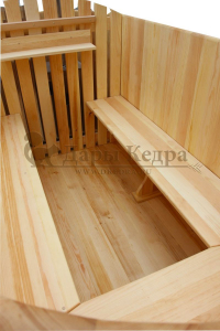Выбирайте купель с учетом ваших возможностей и пожеланий: полностью из кедра, с пластиковой или композитной вставкой.