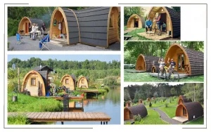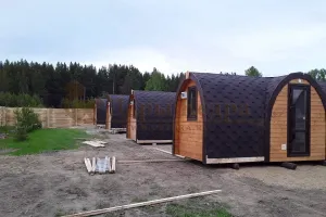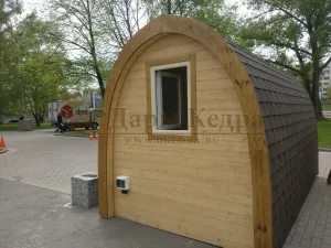 Кемпинг дом изготовлен из хвойных пород древесины. Кровля из мягкой черепицы обеспечивают защиту от осадков.