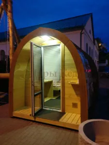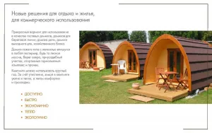 Самый просторный кемпинг дом. Подходит для дачного использования или обустройства загородных баз отдыха. Увеличенные размеры и боковой вход со стеклянной дверью позволяют зонировать внутреннее пространство помещения. Домик включает в себя: