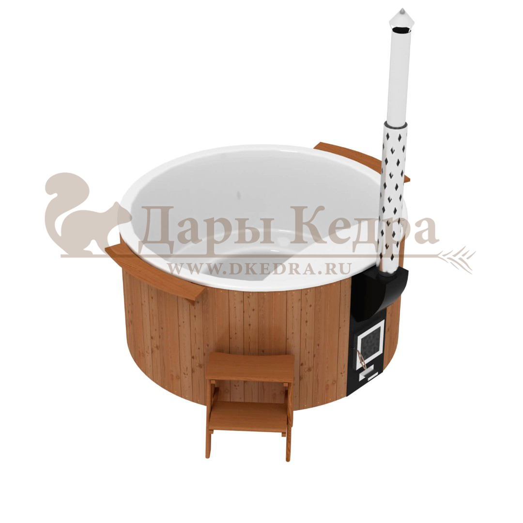 • Финская круглая композитная купель с подогревом (с печкой) «Премиум 220 40 квт» Это уличная подогреваемая купель с круглой внутренней чашей, которая изготовлена из современного прочного и термоустойчивого материала (композита). Форма чаши обеспечивает комфортную посадку во время принятия процедур. Для удобства пользования купель фурако оборудована приставной лестницей. Нагрев воды осуществляется за счет встроенной печи, которая находится внутри купели за перегородкой из кедра. В комплектацию этой модели входит савок с длинной ручкой, который позволяет извлекать угли после эксплуатации изделия. Композитная вставка придает купели красивый внешний вид, продлевает срок службы и облегчает уход за изделием. Парение на свежем воздухе – это отличный способ укрепить здоровье и поддержать организм в тонусе.