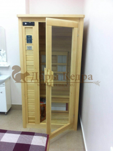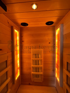 Это специально оборудованная кедровая кабина для прогрева тела человека сухим теплом. Воздух в таких парных не нагревается. Инфракрасные лучи воздействуют на тело, равномерно прогревая мышцы, суставы и органы. Керамические излучатели похожи на лампы, имеют высокую температуру нагрева, поэтому защищены противоожоговыми решетками. Тело человека в таких саунах нагревается интенсивнее. Работает кабина за счет электричества. Компактная одноместная инфракрасная сауна с керамическими излучателями подойдет как для домашнего использования, так и для коммерции.