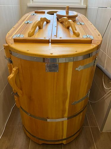 Богатырскую бочку выбрали с мужем по совету менеджером, т.к. супруг тучный и высокий. Ему там вполне комфортно! Спасибо Дарам Кедра за такую красоту!